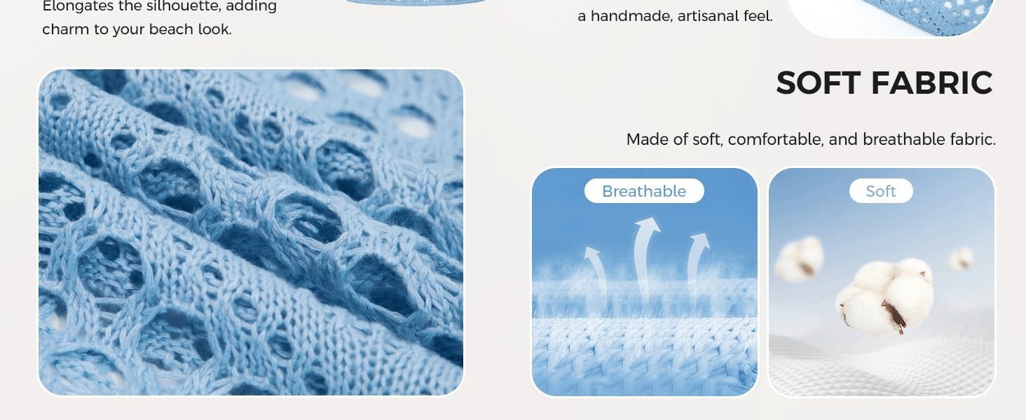 - Styling: Pairs effortlessly with swimwear, pants, shorts, or skirts